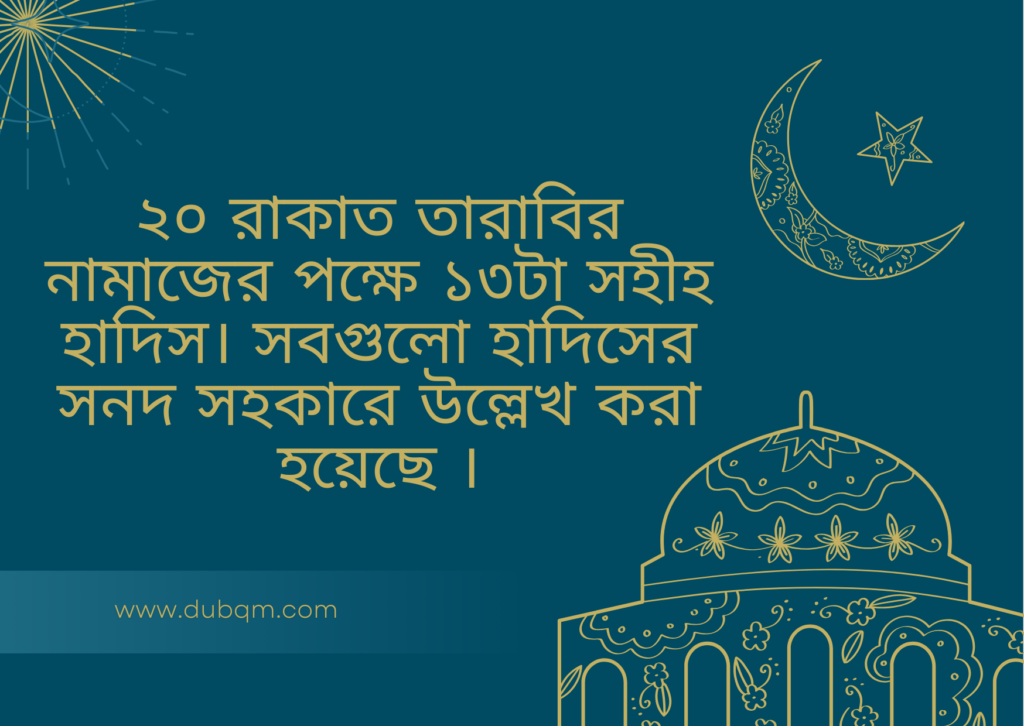 ২০ রাকাত তারাবির নামাজের পক্ষে ১৩টা সহীহ হাদিস। সবগুলো হাদিসের সনদ সহকারে উল্লেখ করা হয়েছে ।