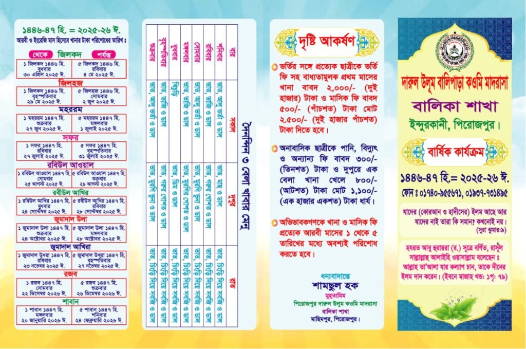 বালিকা কওমি মাদরাসা,মাছিমপুর, পিরোজপুর। ২০২৫-২৬ ঈ. শিক্ষাবর্ষের বার্ষিক কার্যক্রম